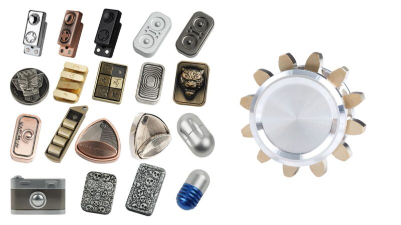 Stainless steel, brass, copper, and titanium are the most common metal materials. They are primarily used to make finger spinners, metal fidget cubes, and magnetic balls. These materials are durable, offering a heavier, more premium feel.